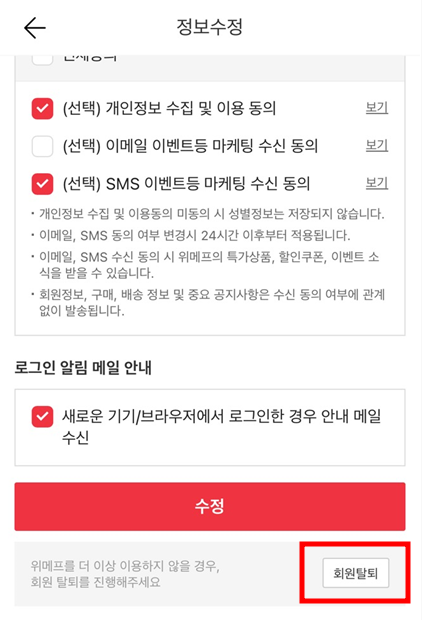 위메프 탈퇴방법 : 모바일에서 탈퇴하기