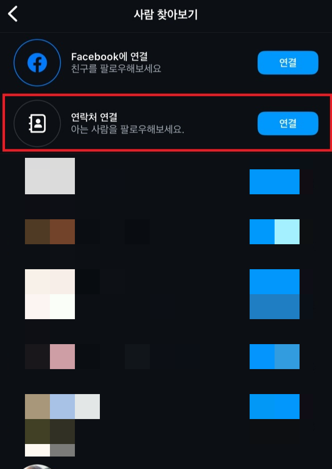 Facebook과 인스타그램 계정을 연결한 후 페이스북 친구를 검색할 수 있습니다.