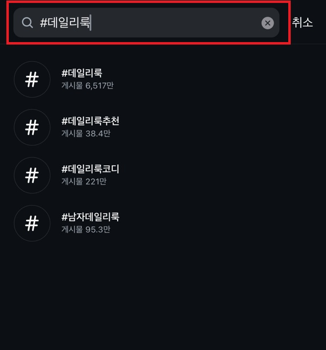 사용자가 자주 사용하는 해시태그를 알고 있다면 해당 해시태그로 검색할 수 있습니다.