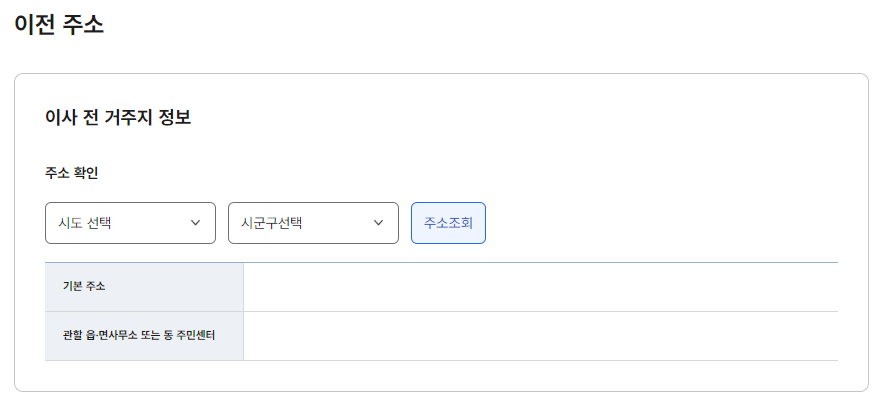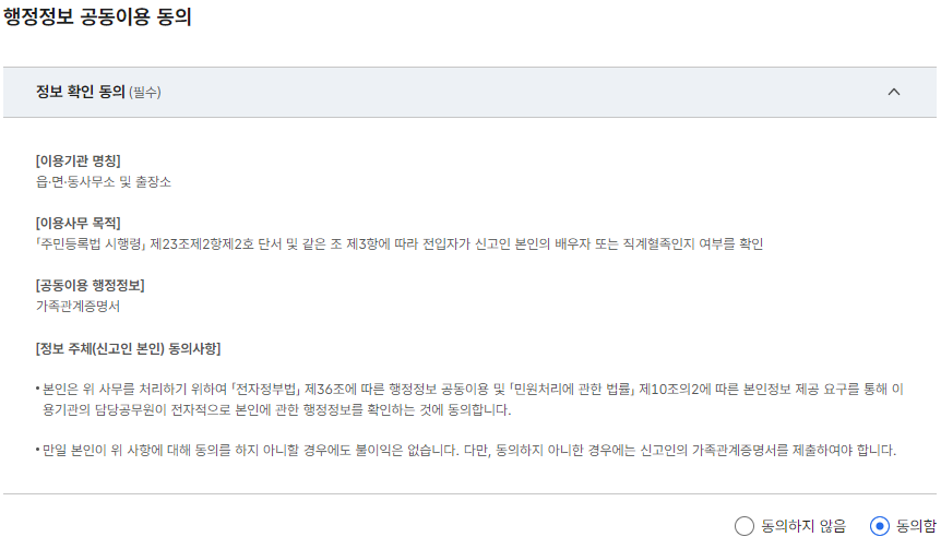 4. 이사 전 주소를 입력 후 이사가는 사람을 선택하고 행정정보 공동이용에 동의합니다.